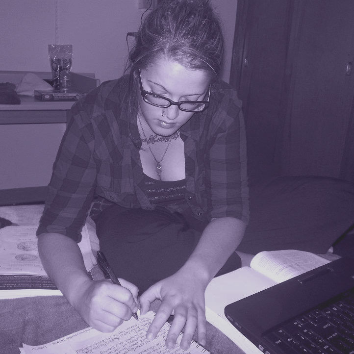 Jamie studying for midterms while obtaining Associates Degree at King’s College circa 2010